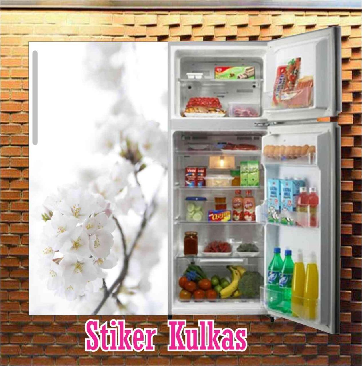 Stiker Kulkas 1 Pintu Walpaper 1 Pintu Motif White Flower Ukuran
