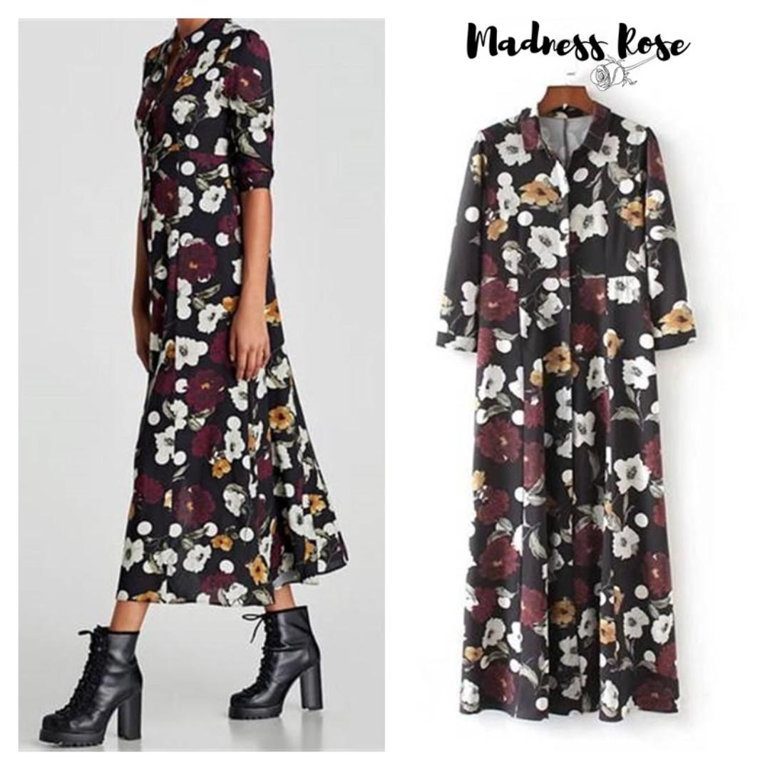 Black Flower Maxi Dress Olshop Fashion Olshop Wanita On Carousell