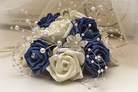 Wedding Flowers Cake Topper In Navy Blue And Ivory Amazon Co Uk