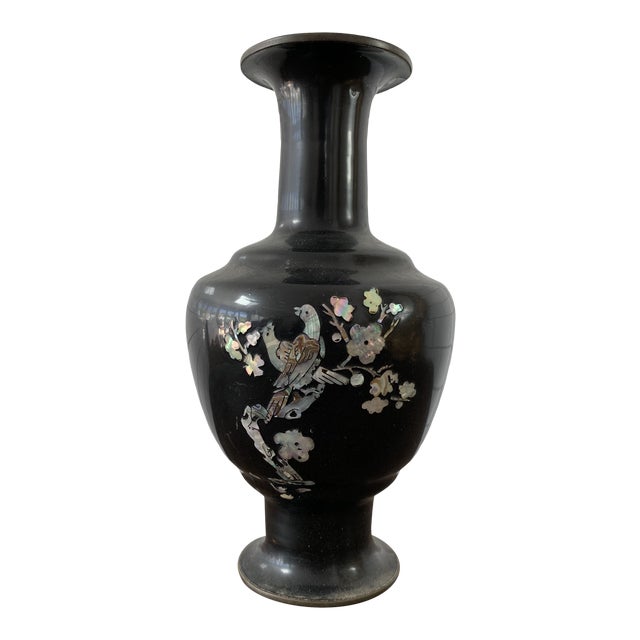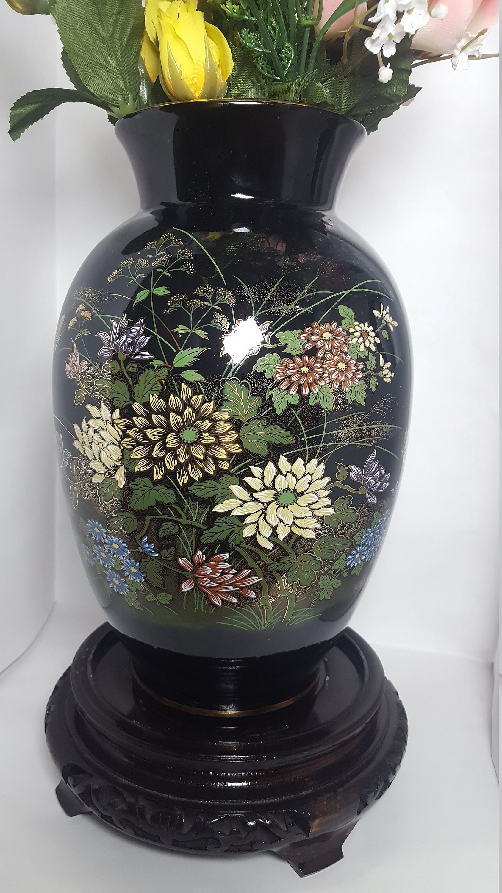 Vintage Japanese 11 Black Flower Vase With Beautiful Etsy