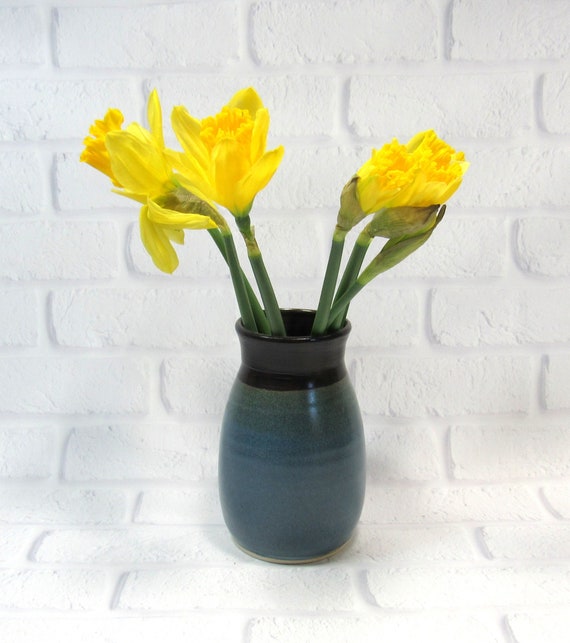 Ceramic Flower Vase Blue And Black Vase Pottery Vase Etsy