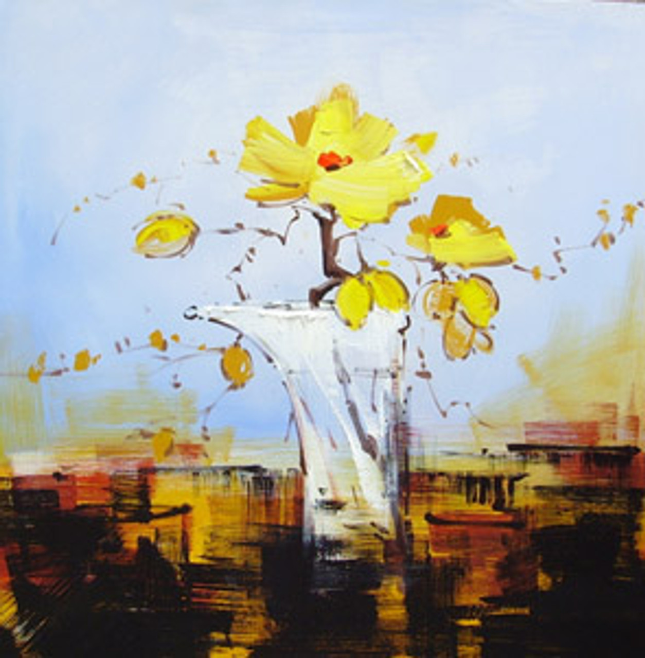 Yellow Flowers On Blue Background Colorful Flower Oil Painting