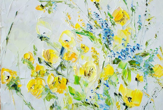 Yellow Flowers Dine Room Wall Art Modern Painting Original Oil Etsy