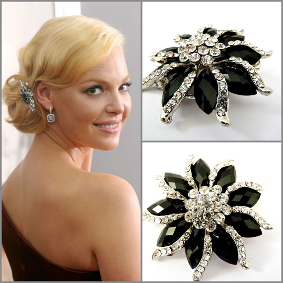 Celebrity Black Flower Rhinestone Hair Clipblack Crystal Etsy