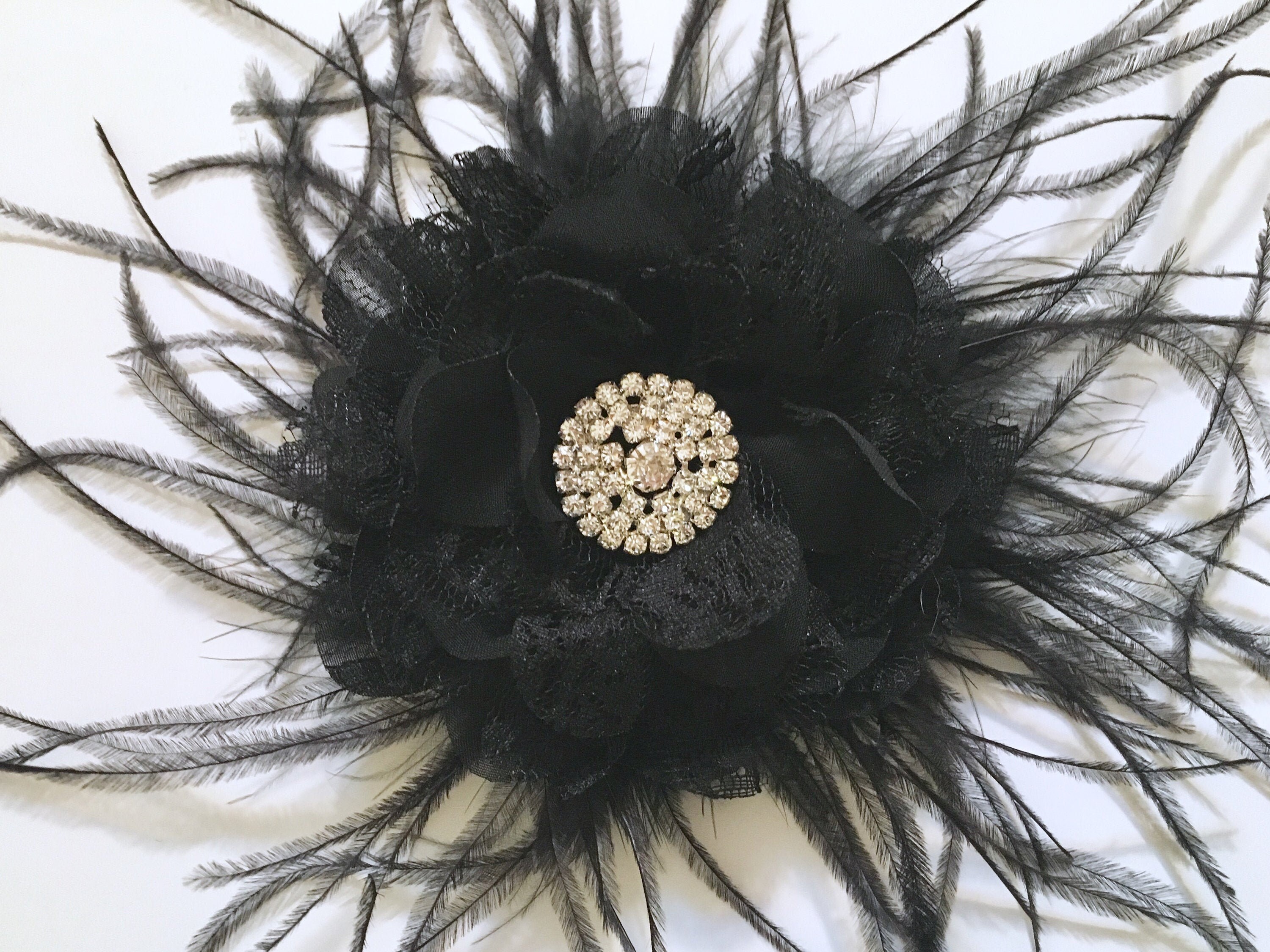 Silk Flower Hair Clip Feather Fascinator Clip Black Flower Clip