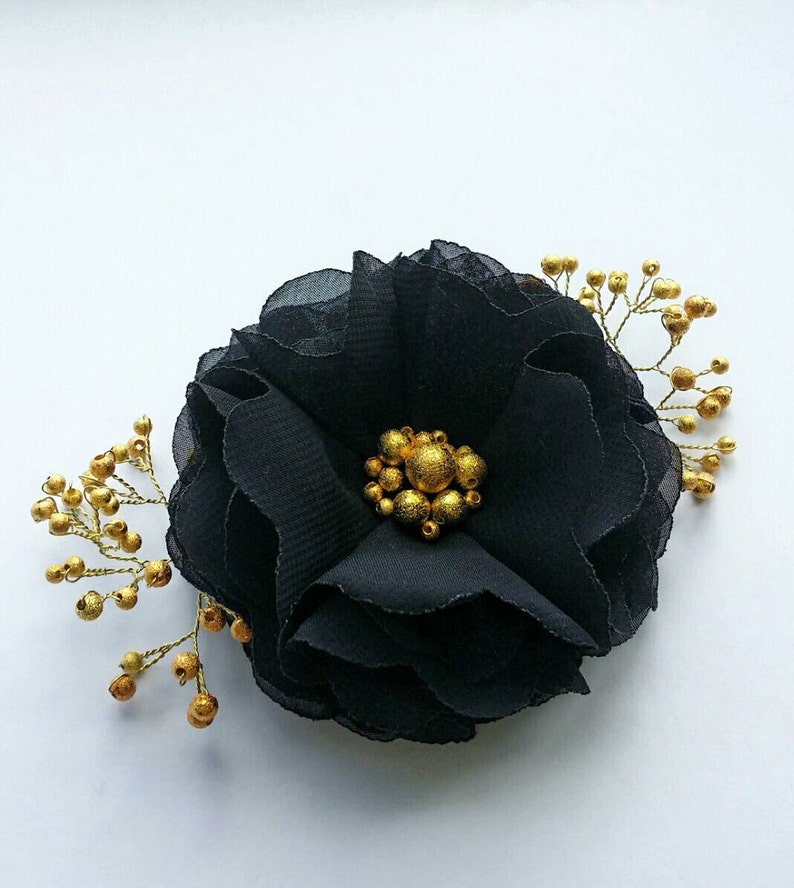 Black Gold Holiday Headband Gold And Black Flower Hair Clip Gold