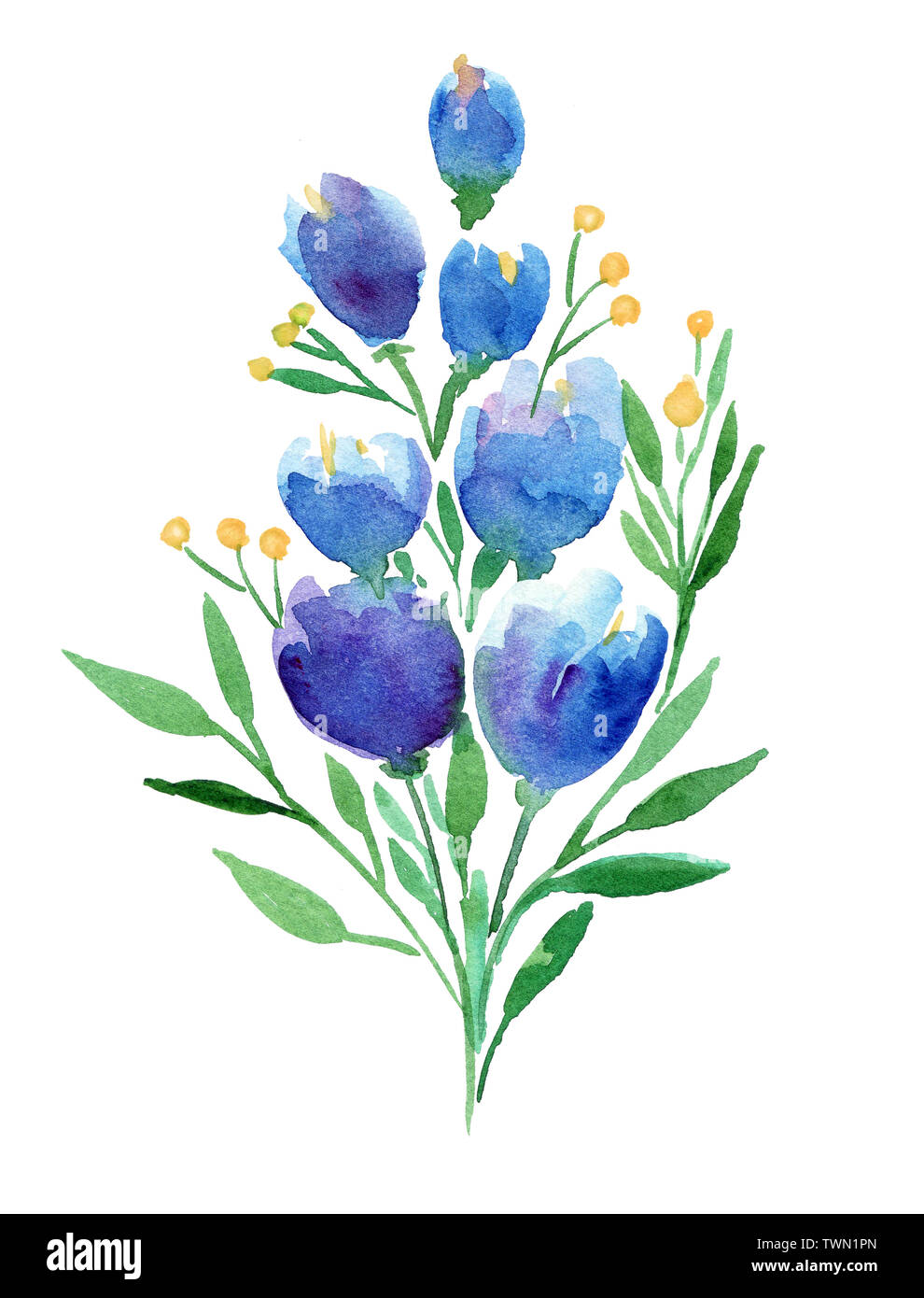 Watercolor Drawing Wild Blue Flowers Painted Wild Plants