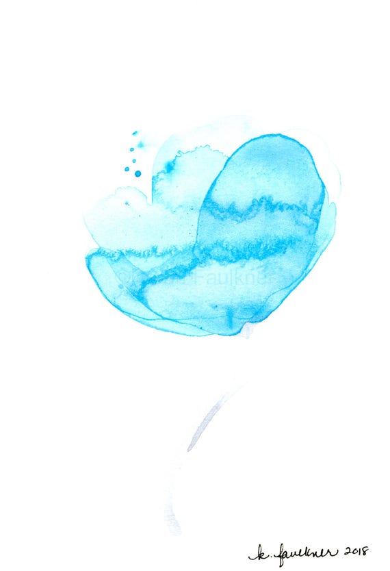 Original Watercolor Painting Of A Blue Flower Sky Blue Etsy