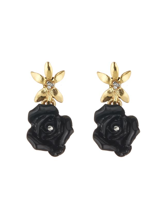 Elizabeth Black Floral Drop Earrings In Gold