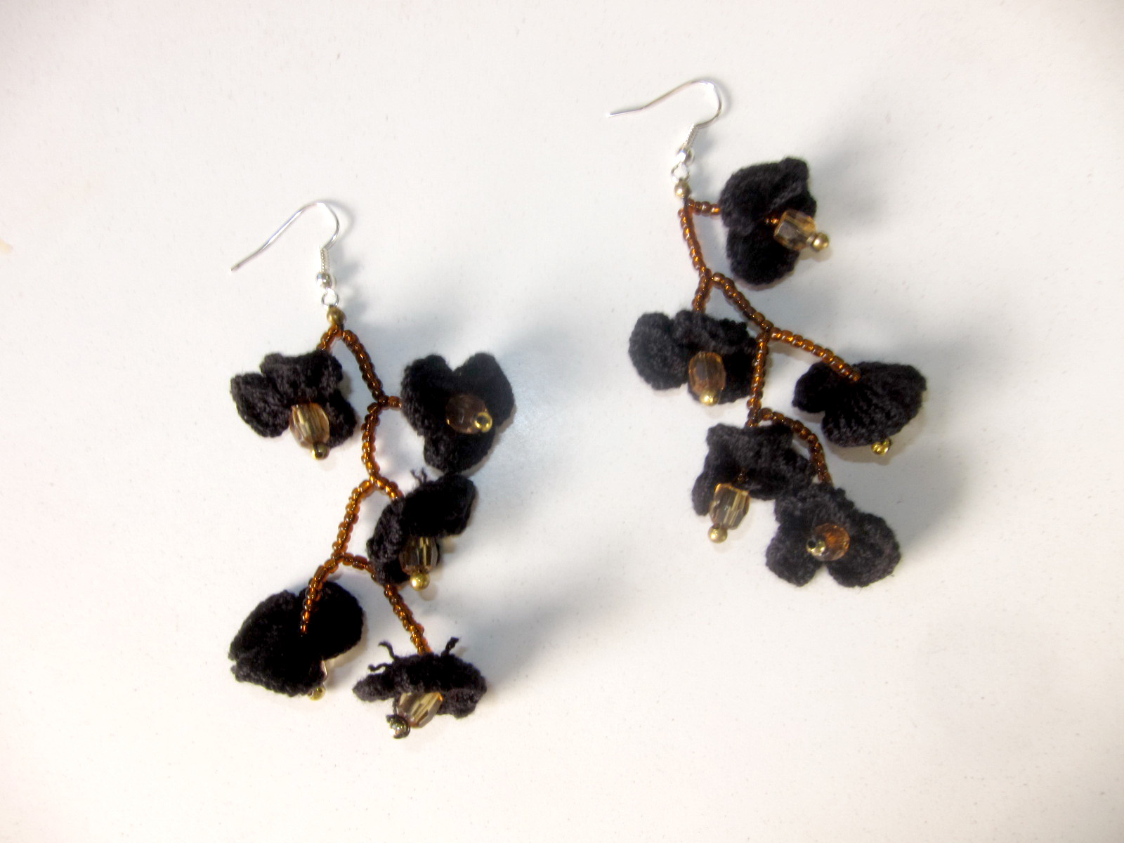 Black Flower Crochet Dangle Earrings W Bead Handmade Jewelry