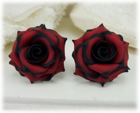 Black Tip Red Rose Earrings Stud Or Clip On Gothic Earrings Etsy