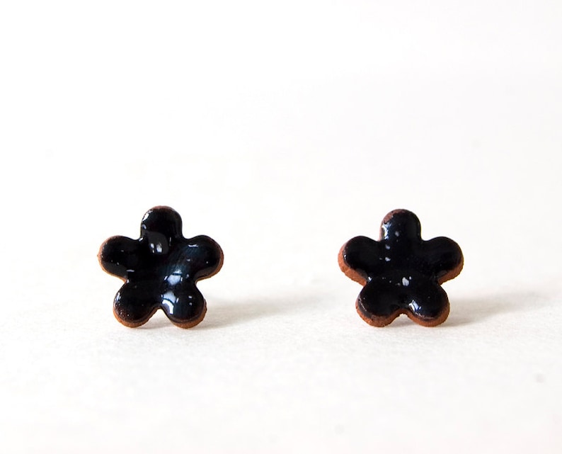 Black Flower Earrings Black Earrings Flower Stud Earring Etsy