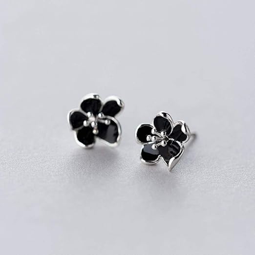 Amazon Com S925 Silver Flower Earrings Women S Art Black Flower