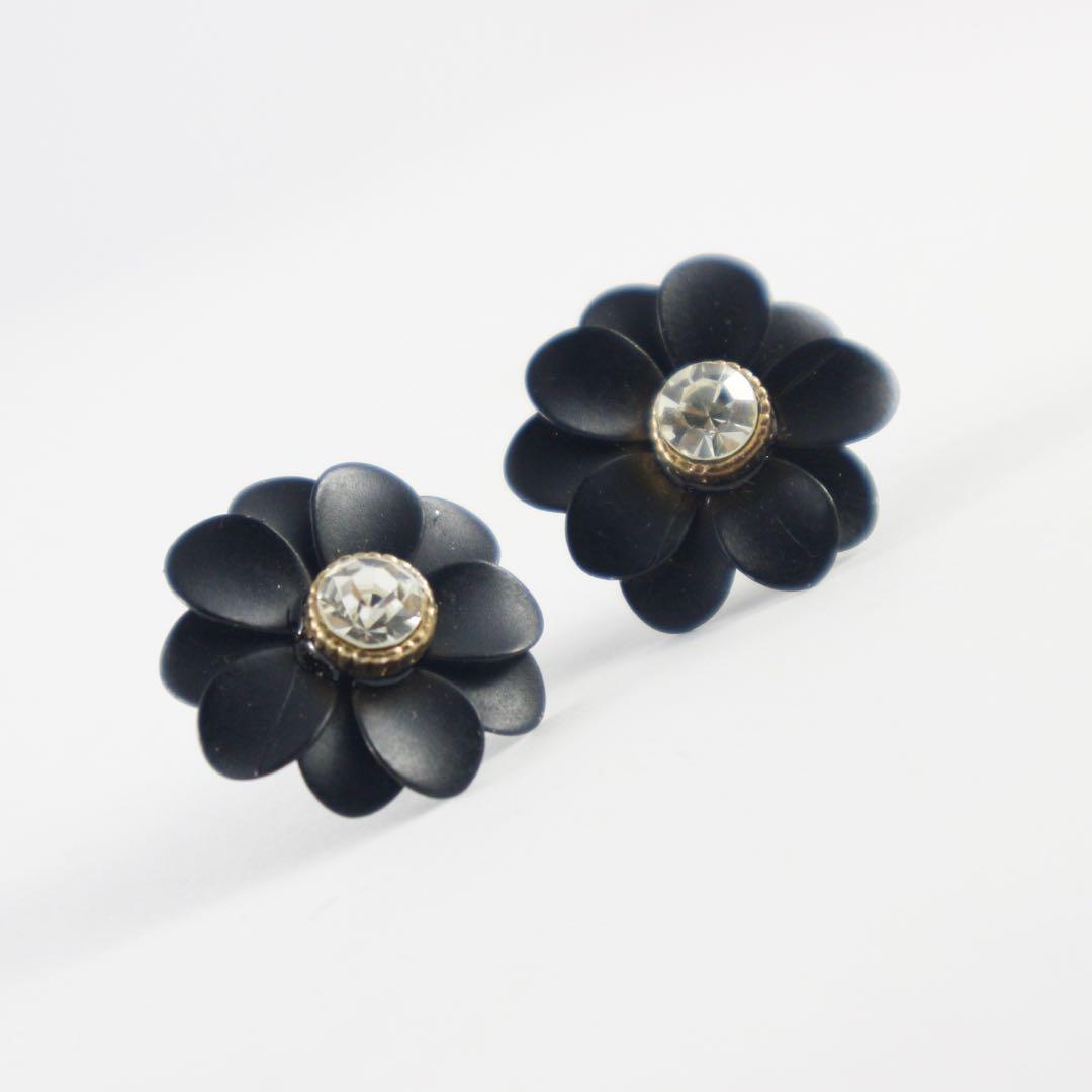 Anting Bunga Hitam Black Flower Earrings Women S Fashion