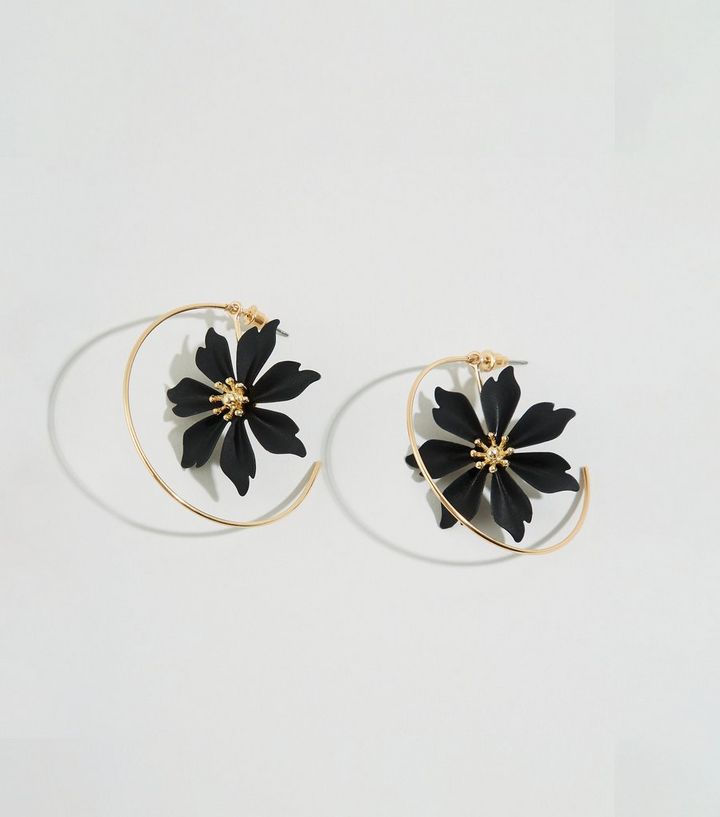 Wanted Black Flower Hoop Earrings New Look