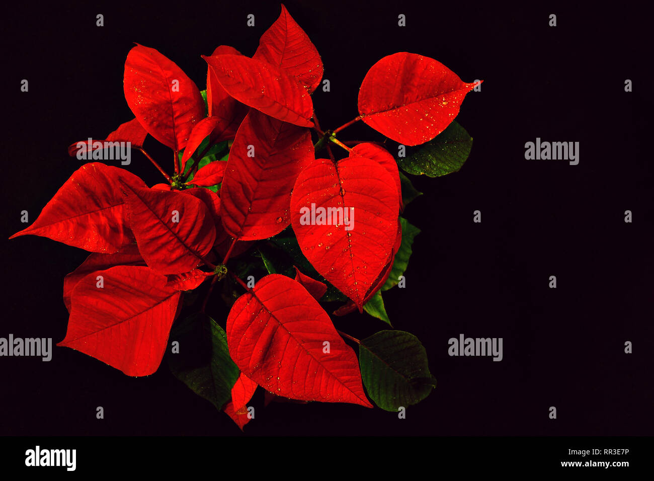 Top View Of Red Flower Christmas Star On Black Background Stock