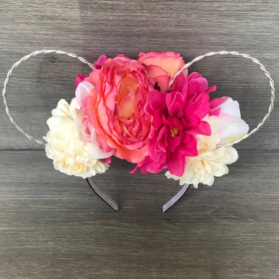 Floral Minnie Ears Flower Crown Flower Minnie Ears Etsy