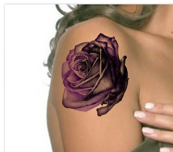 Temporary Tattoo Rose Purple Black Flower Ultra Thin Etsy