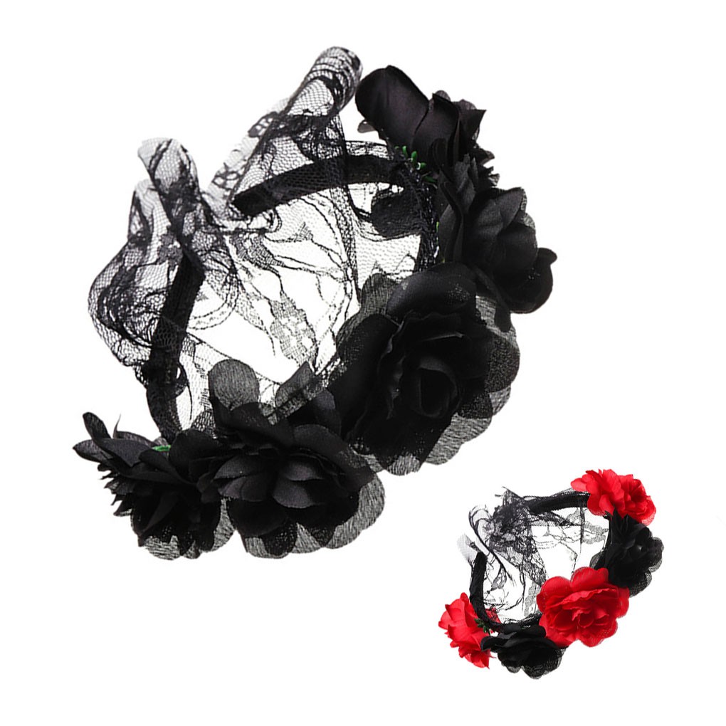 Halloween Headband Women Flower Mesh Floral Crown Hair Wreath