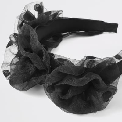No matter what youre looking for or where you are in the world our global marketplace of sellers can help you find unique and affordable options. This beautiful black flower headband is made with a delicate 25 black satin ruffle rosette flower with a large clear and black rhinestone center on a 58 soft black and white damask elastic headband. Keep your hair in check with our awesome selection of trendy hairbands.