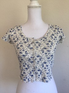 Brandy Melville Blue White Crop Floral Cotton Button Up Zelly Top