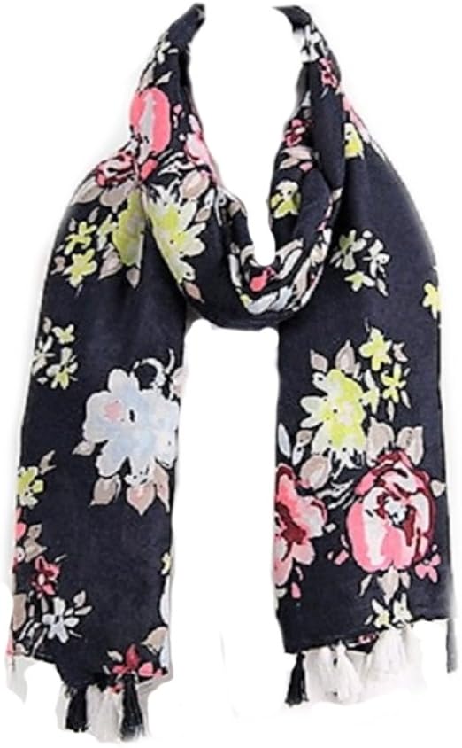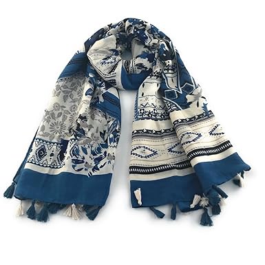 Zelly Blue Scarf Boho Floral Cotton Soft Light Weight Womens