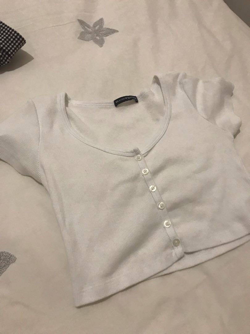 Brandy Melville White Crop Ribbed Button Up Cotton Zelly Top Nwt