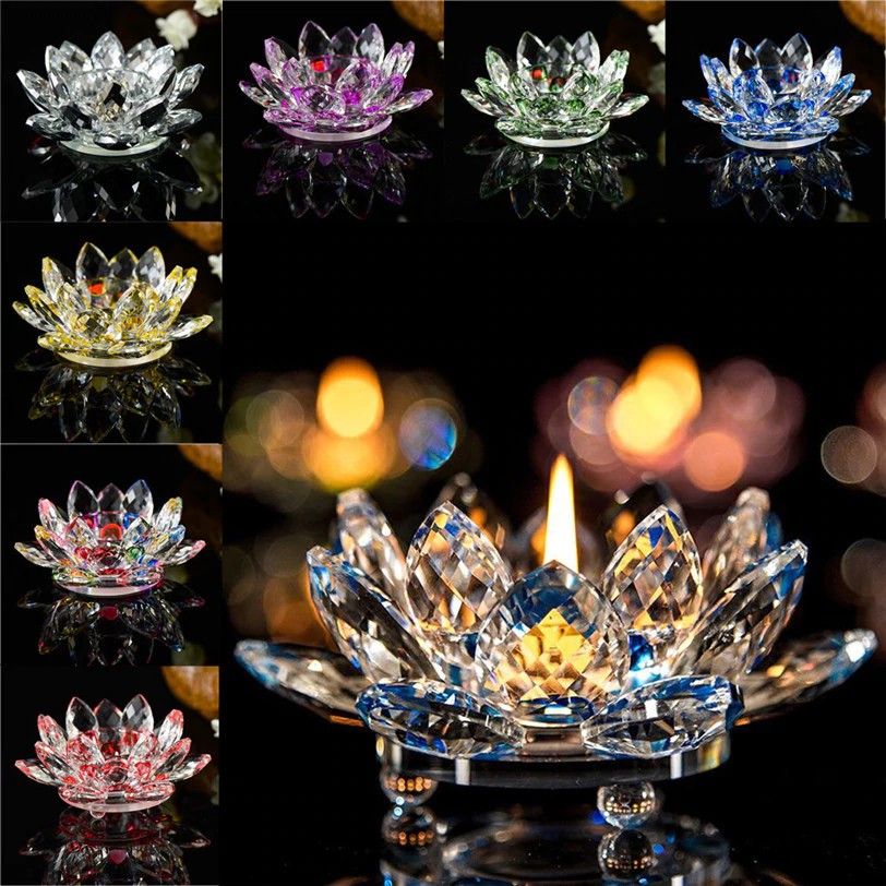 7 Colors Crystal Lotus Flower Candle Holder Buddhist Candlestick