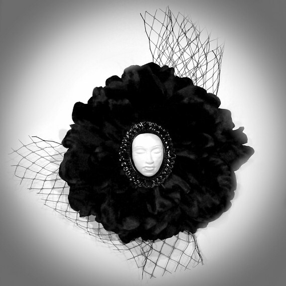 Gothic Death Mask Black Flower Hair Clip Cameo Fascinator Etsy