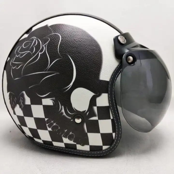 Helm Retro Bogo Kulit Motif Death Flower Klasik Kaca Bubble