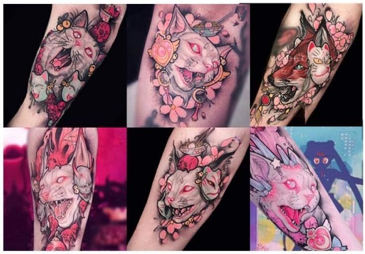 Kekemm Temporary Tattoos Japanese Flower Arm Fox Dark Black Cat
