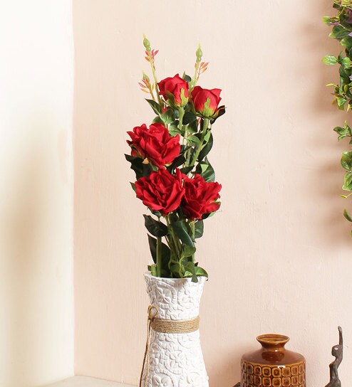Buy Red Fabric Plastic Artificial Rose Flower Stick Set Of 2 By