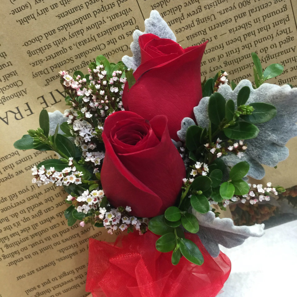 2 Red Rose With Some Leaf Corsage Angelic Flower