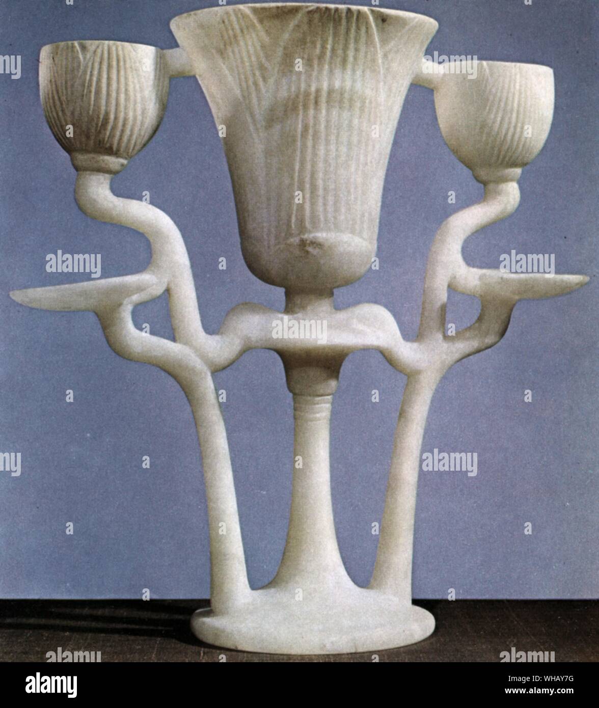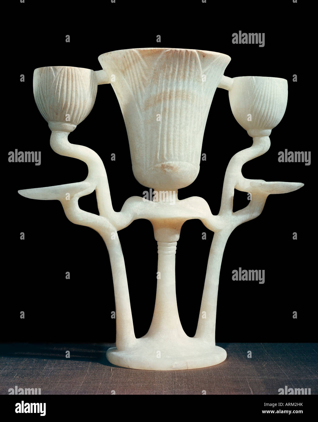 Alabaster Lamp In Shape Of Three Lotus Flowers From The Tomb Of