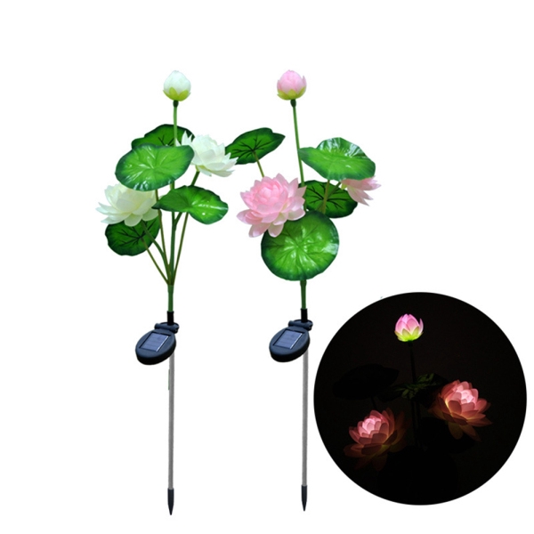 Fashion Solar Powered 3 Led Artificial Lotus Flower Light