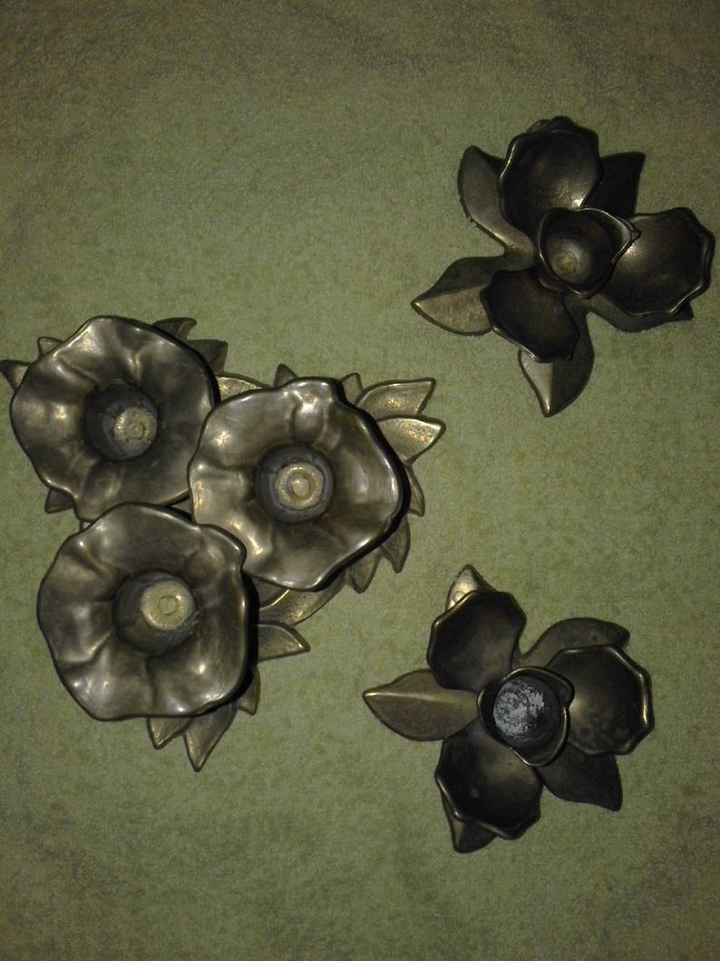 Vintage Candle Lamp Brass Flower Lotus Blossom Vintage 3 In Etsy