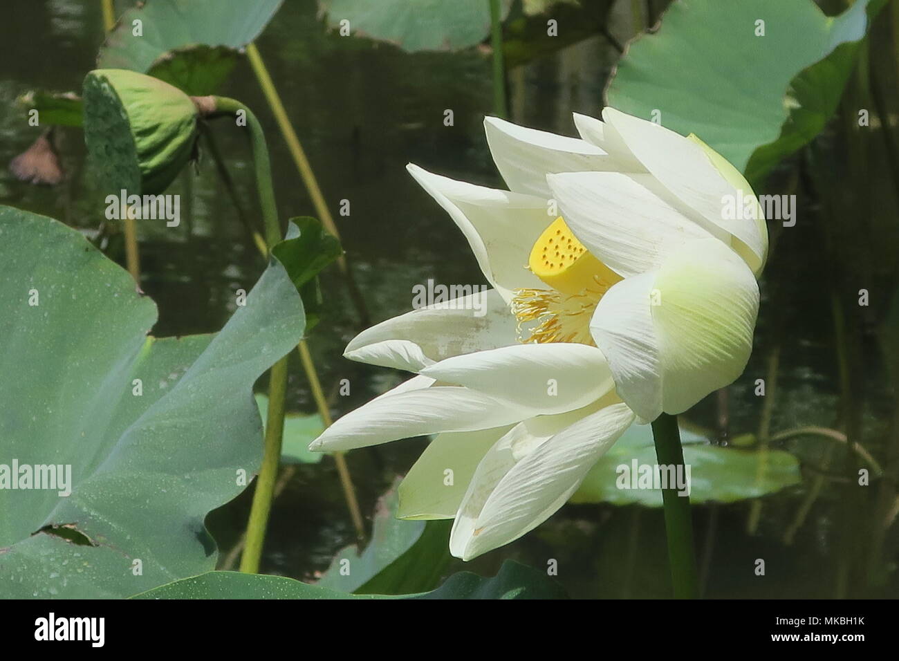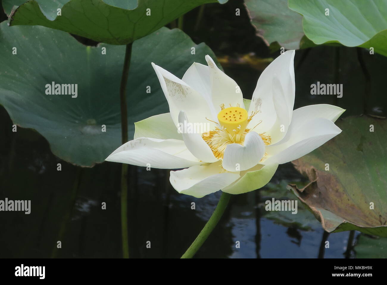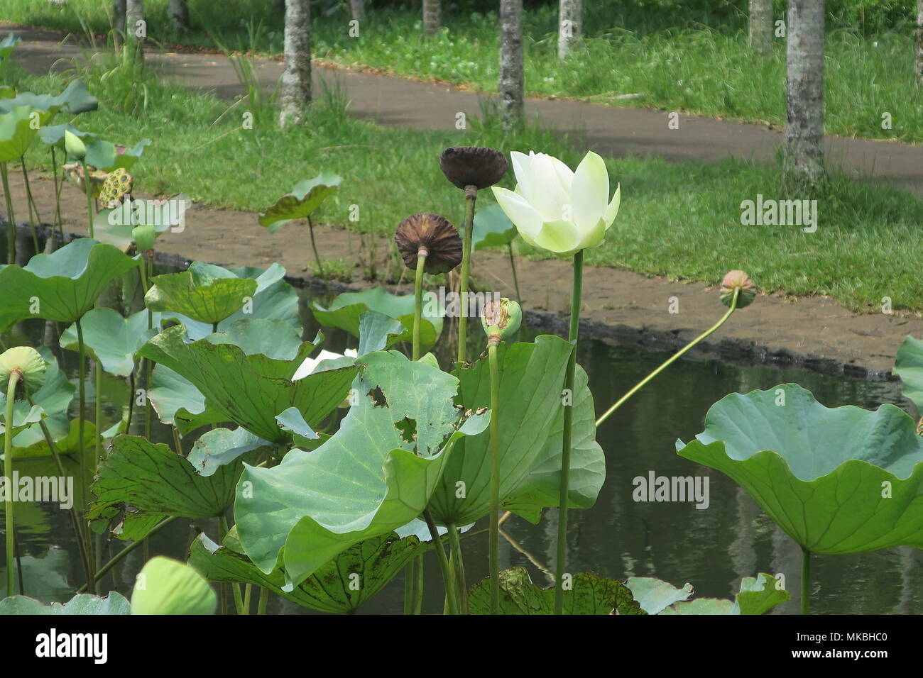 Blooming White Wild Lotus Flower Bali Island Indonesia Stock
