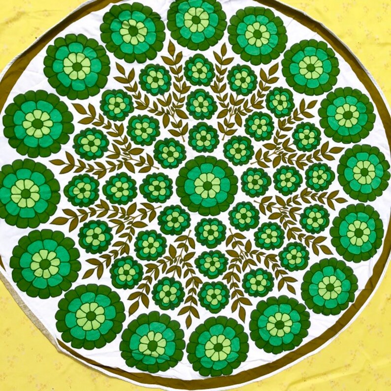 Vintage Round Tablecloth 1970s Flower Power Psychedelic Etsy