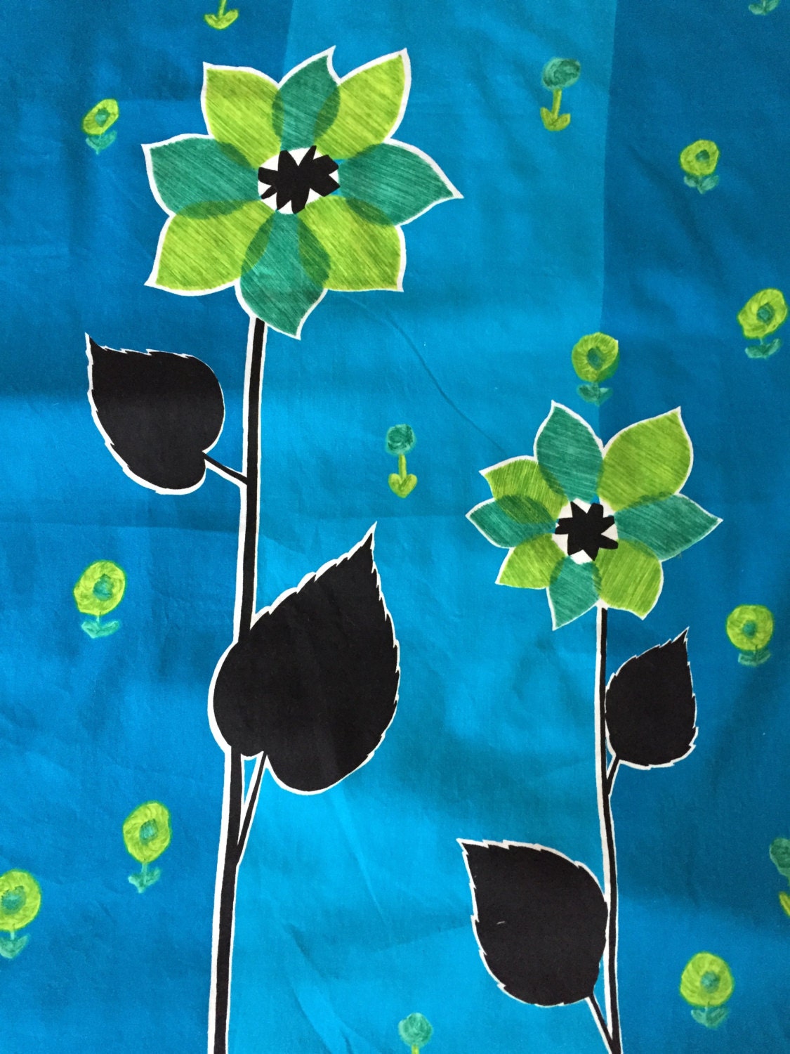 Sale Item Op Vintage 70s Psychedelic Neon Flower Print Teal