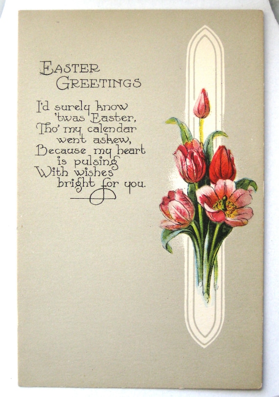 Vintage Easter Postcard With Red Tulip Flowers Poem Unused Old Etsy