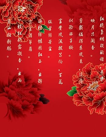 Chinese Traditional Poem And Red Flower Peony Amazon Co Uk