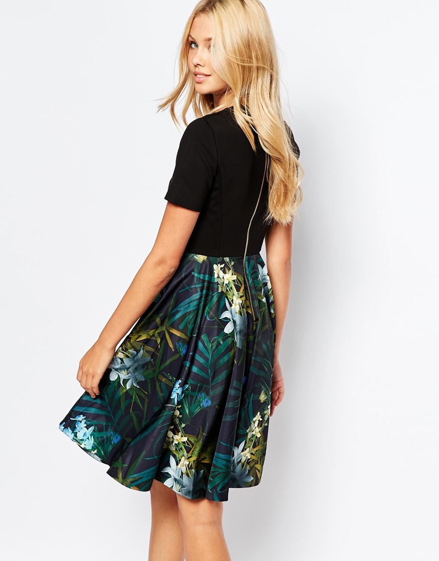 Ted Baker Caprine Twilight Floral Skirt Dress In Black Lyst