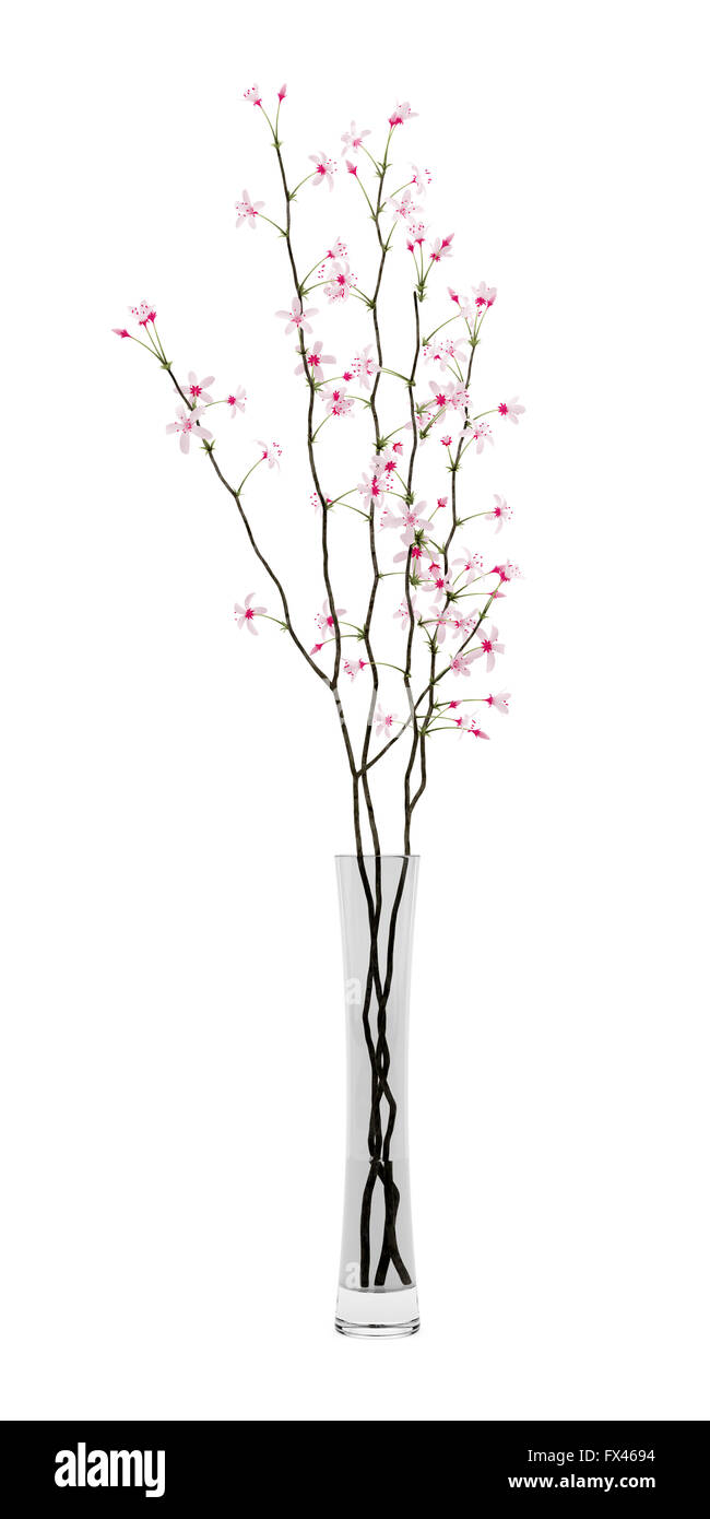 Flowering Tree Twigs In Glass Vase Isolated On White Background