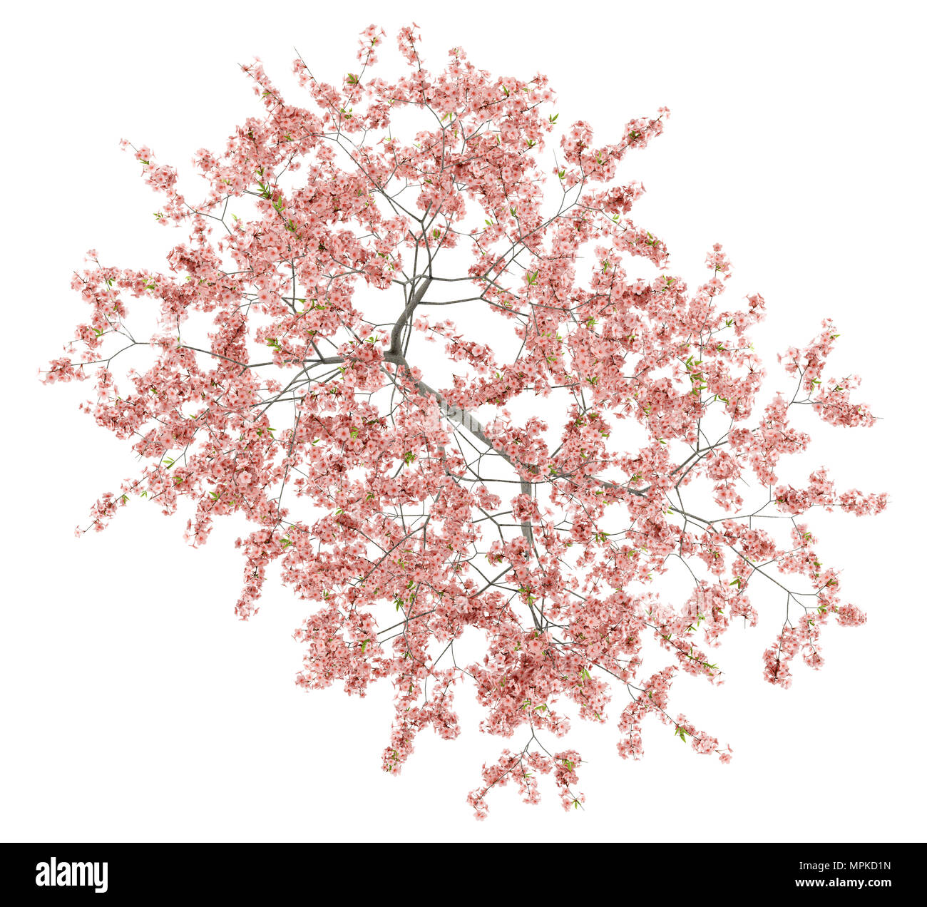 Top View Of Flowering Plum Tree Isolated On White Background 3d