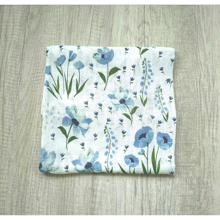 Kain Bedong Bayi Muslin Swaddle Baby Lucu Modern Blue Flower