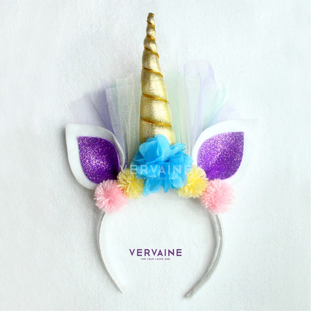 Bando Unicorn Blue Flower Pompom Shopee Indonesia