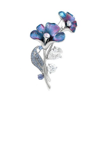 Jual Glamorousky Purplish Blue Flower Brooch With Blue Purple