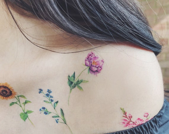Flower Temporary Tattoos Set Of 7 Flower Tattoospeony Etsy