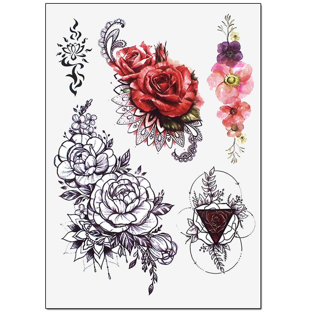 Temporary Tattoos Flower Set Of 7 Flower Tattoos Rose Flower