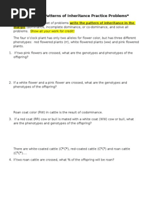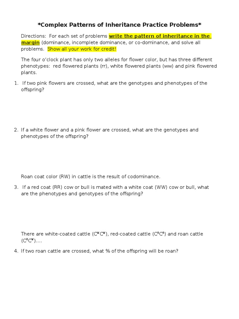 Bio 102 Practice Problems Mendelian Genetics Beyond Pea Plants